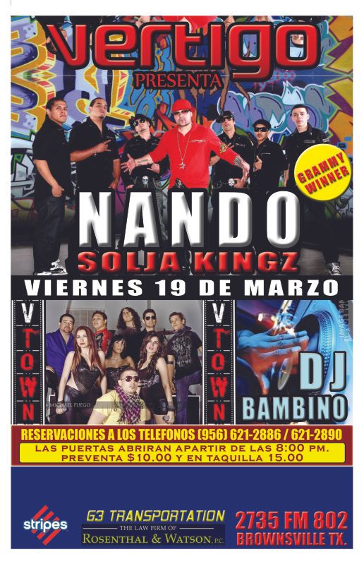 19 de Marzo show de NANDO Y SOLJA KINGZ en el Club Vertigo en Brownsville